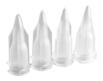 Each pack contains 25 clear disposable nozzles with the following specifications: