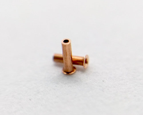 Rivets are small copper tubes used to create vias. These vias form a mechanical connection between the top and bottom layer of a PCB. To install, purchase the 0.40mm rivet tool that corresponds with the size of these copper rivets.