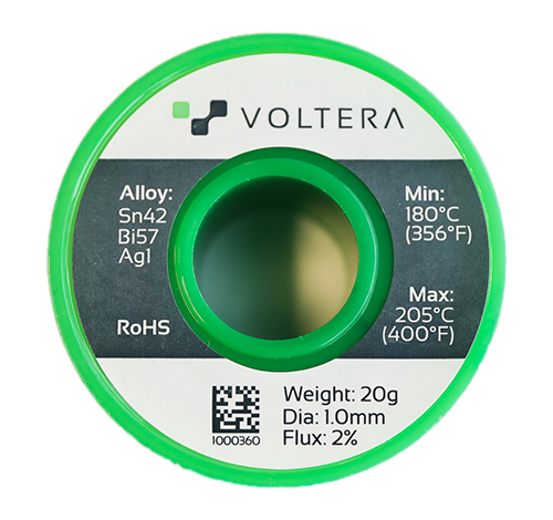 Use this solder wire with plenty of flux to ensure a strong solder joint when you’re adding components to your board by hand. It’s been chemically tested to ensure it is the most compatible solder for Voltera ink.