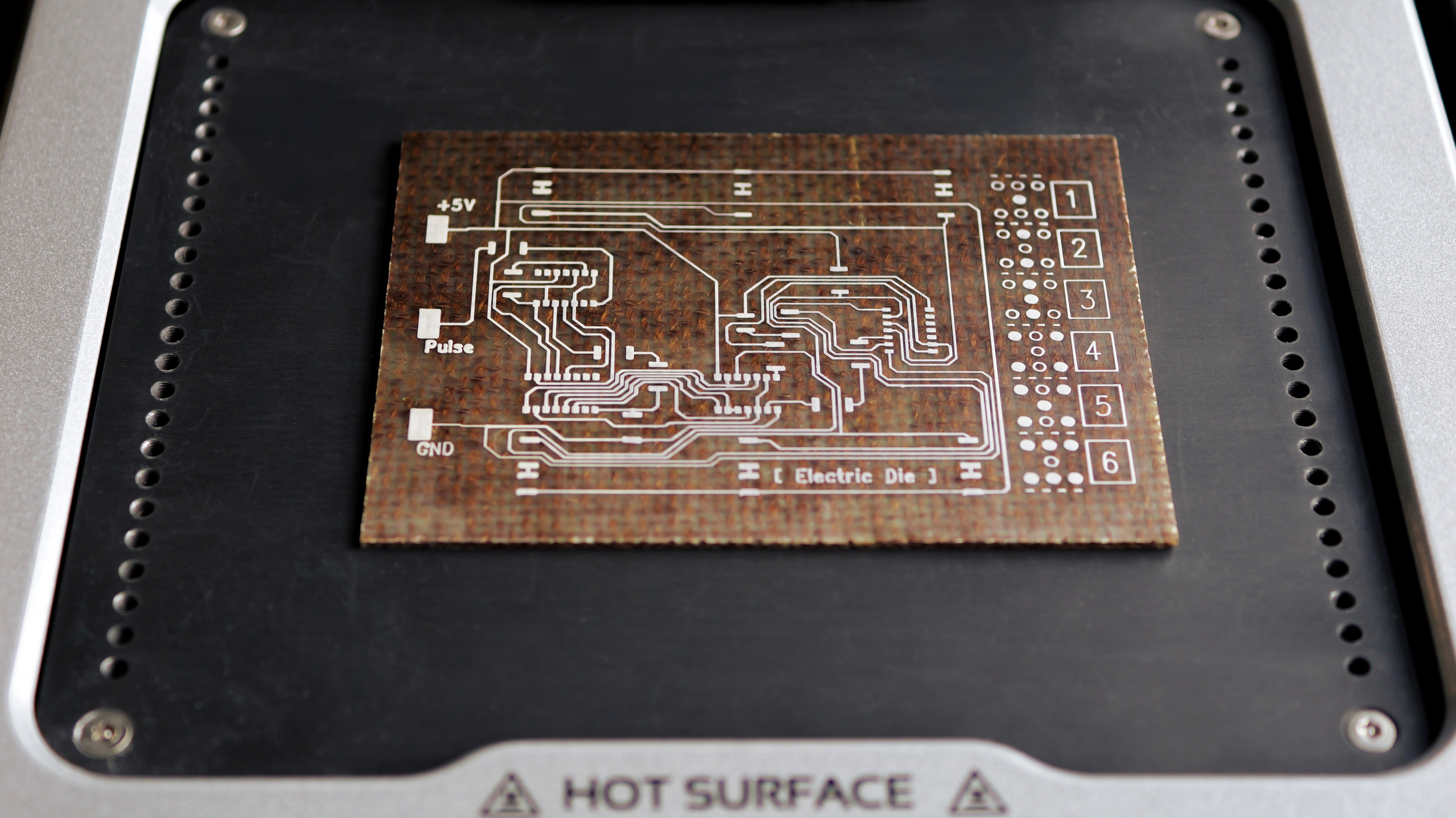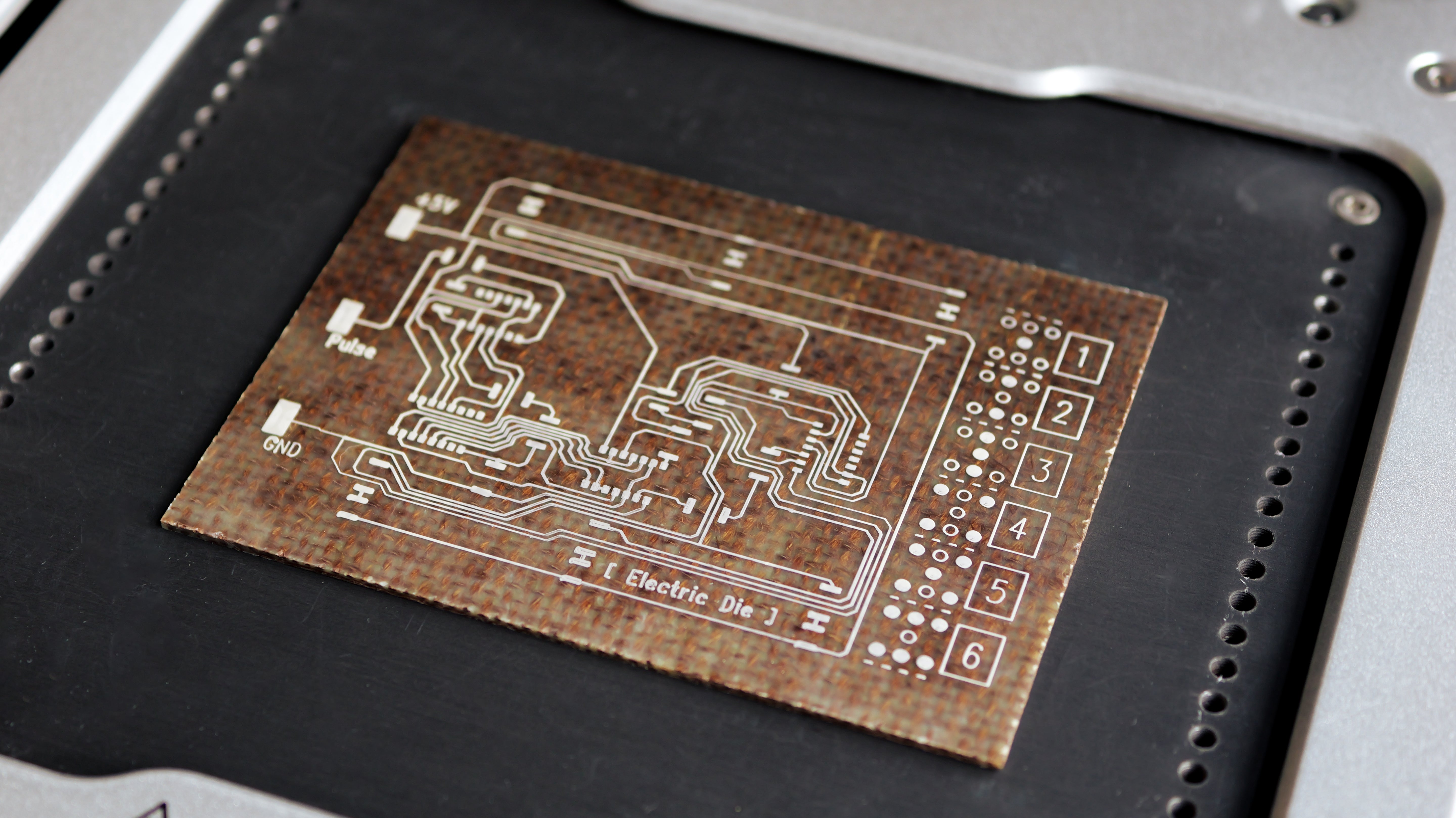 These blank 3” x 4” Soluboards® substrates are ready for printing on either V-One or NOVA. Clamp them to the printing platform and press print to dispense ink and print your circuitry.