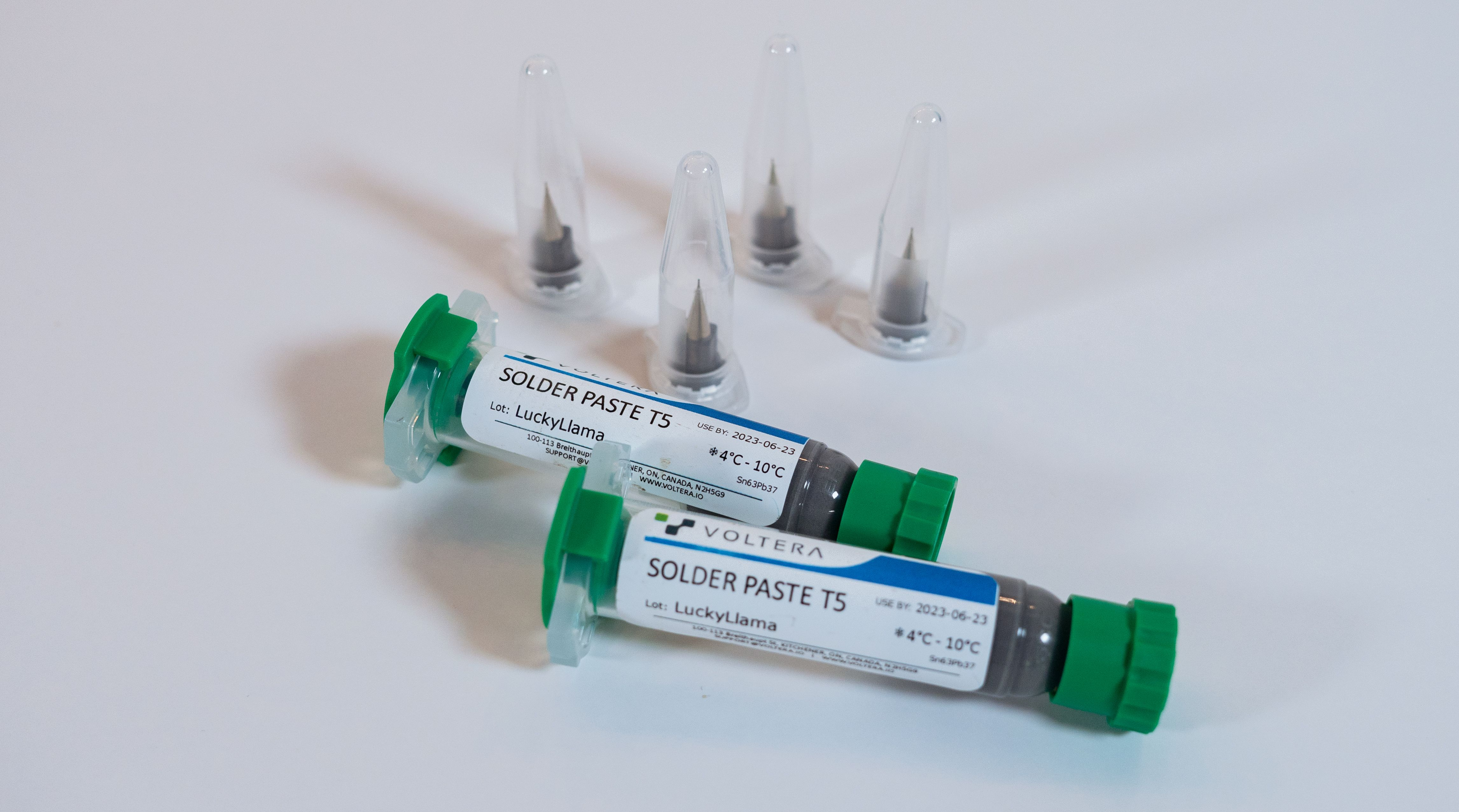 If you have to populate a lot of factory fabricated boards, you need solder alloy that is compatible with boards with HASL finish (NOT Voltera ink). Save 10% with the Factory Fabricated Assembly Bundle.